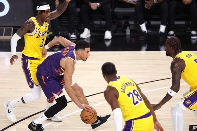 次节比赛,太阳进攻状态开始下滑,湖人在里夫斯的带领下展开反扑,自己突破打成2+1,接着助攻拉拉维亚三分命中,八村三分也把握住,直接轰出一波18-2的攻势,将分差缩小至2分。好在伊戈达罗扣篮止血,布鲁克斯追身三分命中,太阳稳住局势,湖人这边未能延续势头,还接连犯错未能进一步追分,太阳则在布克的带领下稳住局势,重新占据场上主动,半场57-44领先湖人。